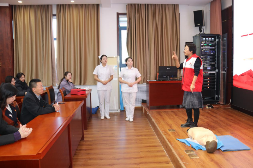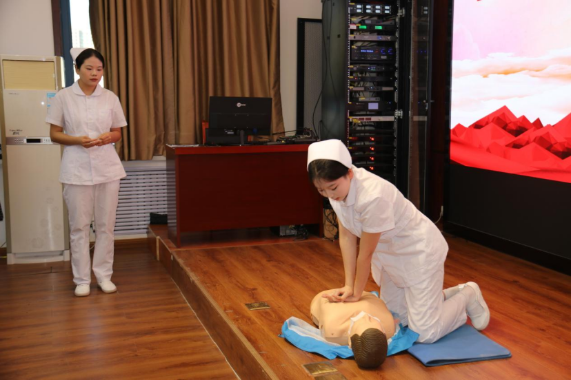 参观结束后,开展了一场以“安全急救知识”为主题的讲座与实操演示。沧州医学高等专科学校护理系的专业教师系统讲解了心肺复苏等常见急救技术的操作要点,强调了“黄金救援时间”的重要性与科学施救规范。讲解过程中,专业人员进行了规范娴熟的操作演示,展现了扎实的专业素养。