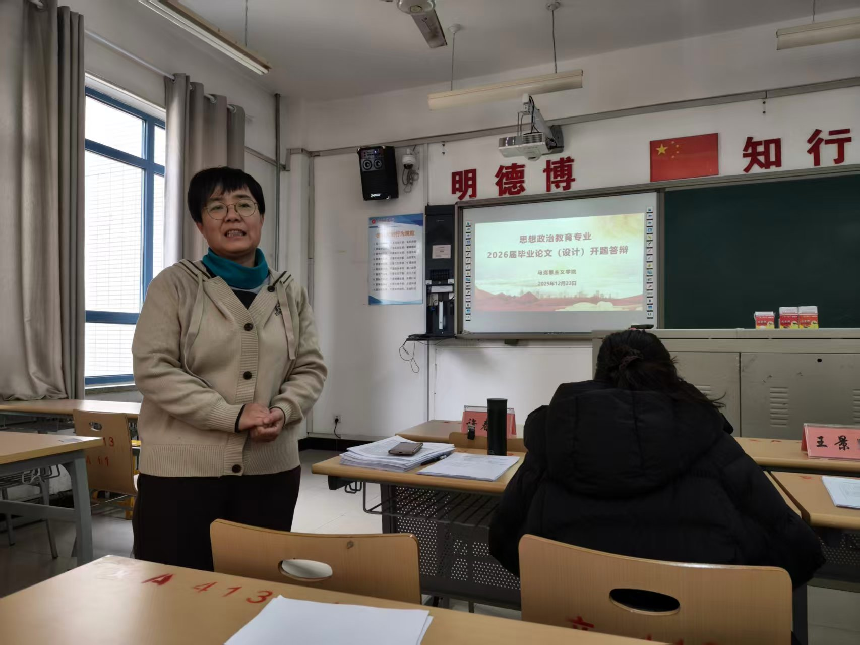 为进一步强化毕业论文过程管理、保障论文质量,依据马克思主义学院毕业论文开题答辩方案,马克思主义学院于2025年12月23日在文科楼开展思想政治教育专业毕业论文开题答辩活动。